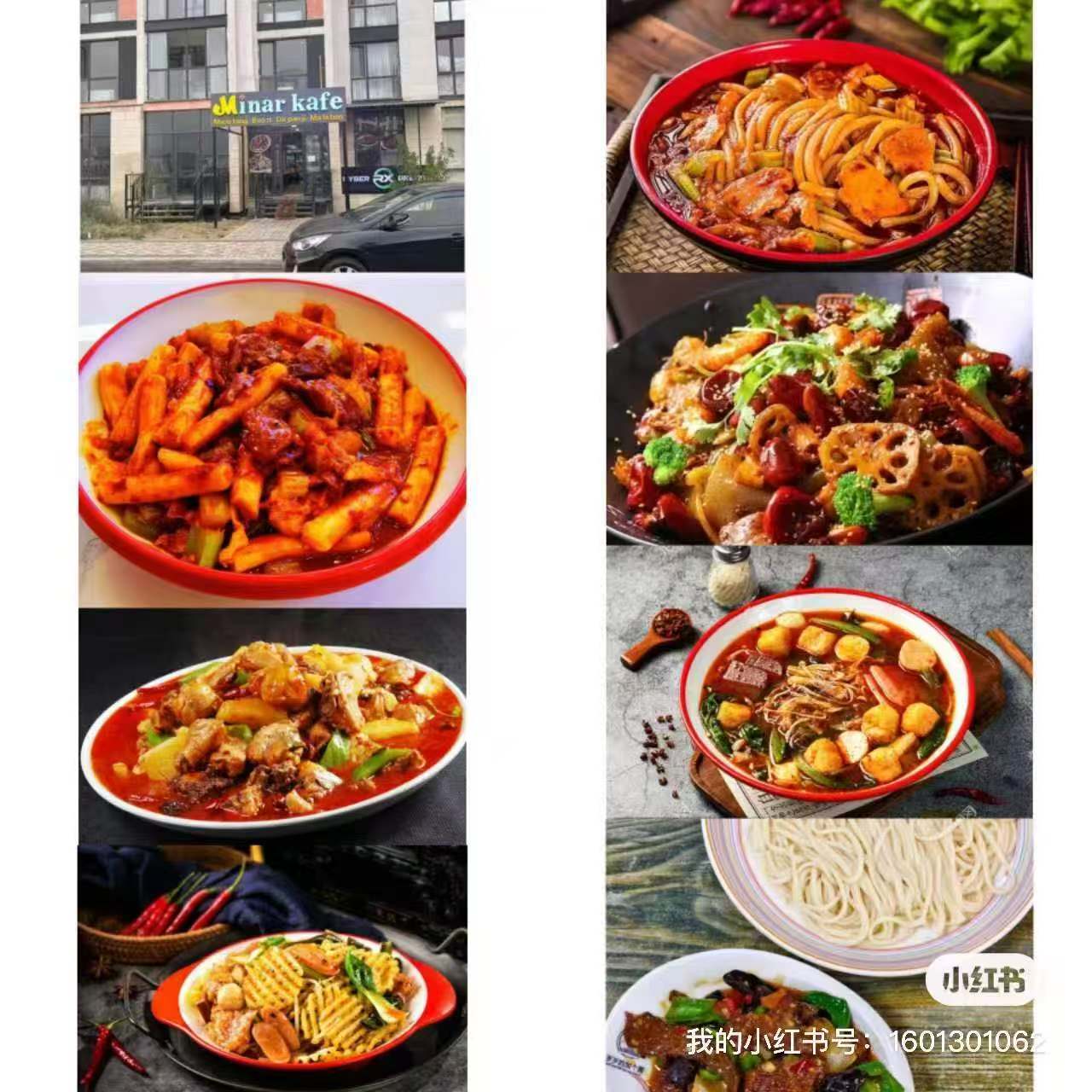 Minar 餐厅🍀: 菜单中: 拌辣麻,麻辣烫,菜冒,大鸡盘,椒麻鸡,面拌,韭菜子包,肉包子,烧烤,,米饭,马肉,炒粉米,年糕,粉米年糕对半,,拌面😋。 可卖外点以