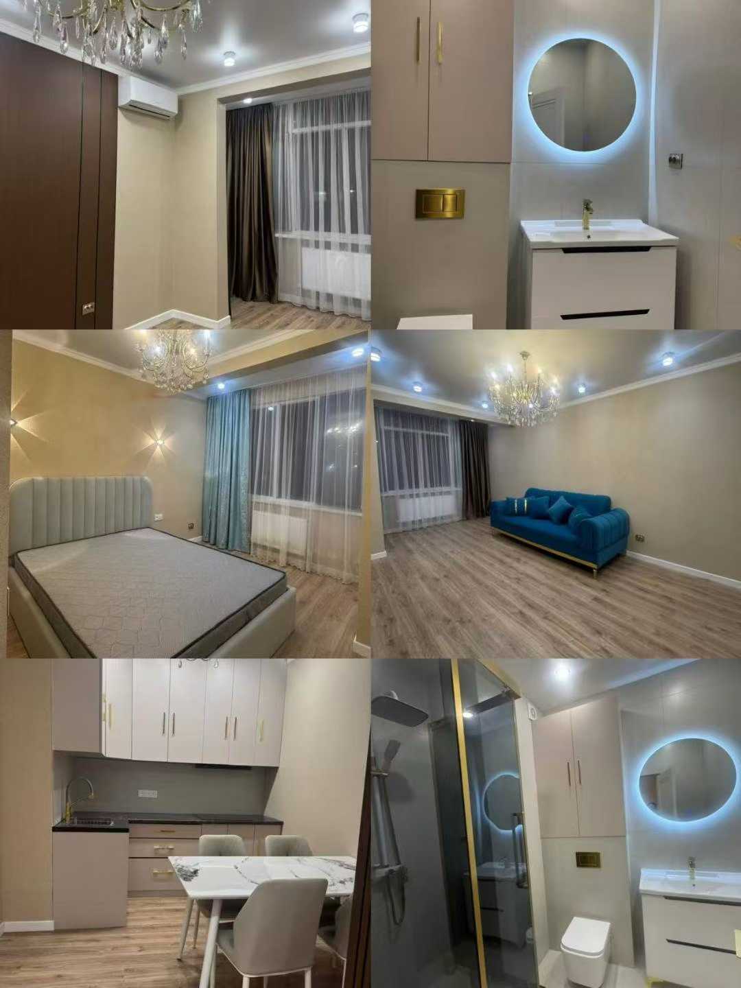 Akkent旁Qargaly小区一套精装修,2025年交付新房,一室一厅一厨一卫51平公寓出售,客厅、厨房分离。拎包入住,衣柜、床、沙发、电磁炉、桌椅、空调全都有,联系电话8701 6116501